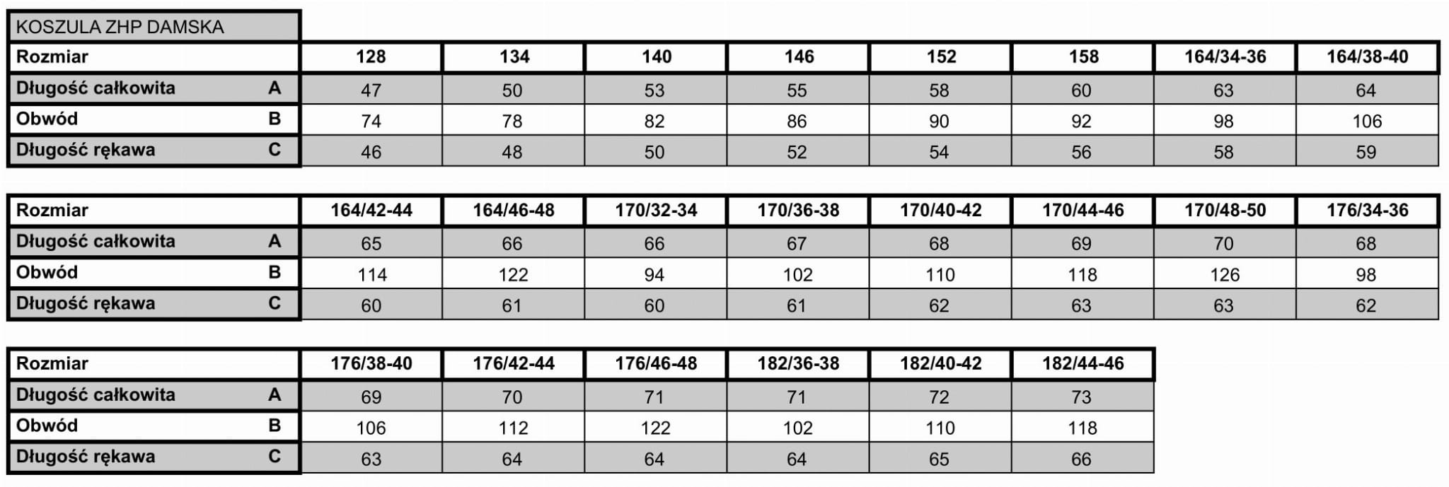 Koszula mundurowa damska jest częścią oficjalnego umundurowania ZHP. Jest w kolorze szarym z przodu zapinana na całej długości guzikami oksydowanymi. Koszula posiada dwie kieszenie na wysokości klatki piersiowej. Na patce prawej kieszeni znajduje się wyhaftowana flaga Polski oraz oficjalne logo ZHP. Nad patką znajduje się obszyte miejsce na krzyż harcerski lub znaczek zucha.
